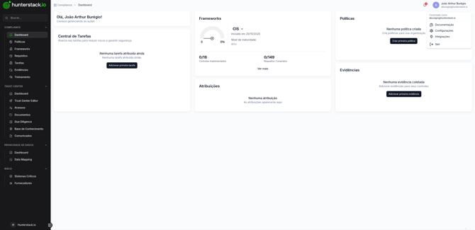 - Menu de Perfil: No canto superior direito da plataforma, clique sobre a sua foto de perfil (ou iniciais).