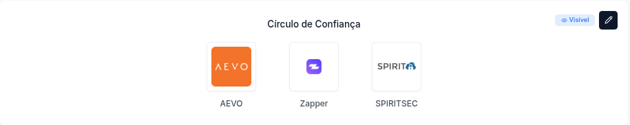 - No bloco "Círculo de Confiança", adicione logotipos de parceiros estratégicos, clientes renomados ou fornecedores de segurança. Esta seção é fundamental para estabelecer credibilidade de mercado através da associação de marca.