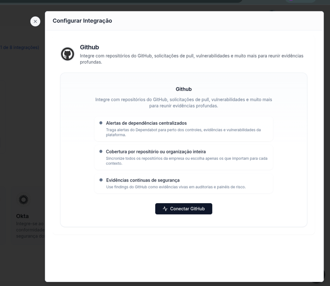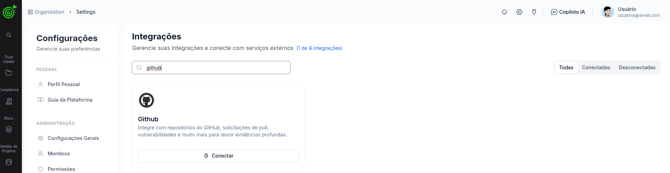 Na listagem de integrações, procure por Github e clique no botão Conectar.