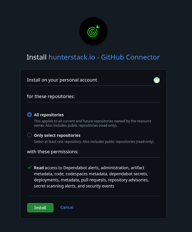 Agora a integração com o Github estará ativa e pronta para uso após a confirmação.