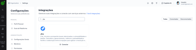 Na listagem de integrações, procure por Jira e clique no botão Conectar.