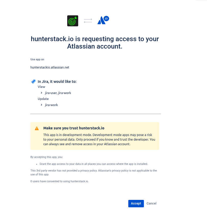 - Você será redirecionado para a página de autorização do Jira. Confirme as permissões solicitadas.