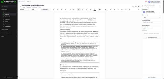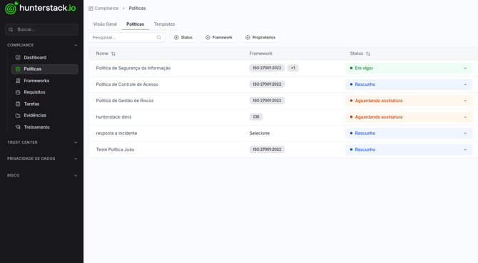 Procedimentos para vincular colaboradores a políticas e registrar o aceite digital para fins de auditoria.