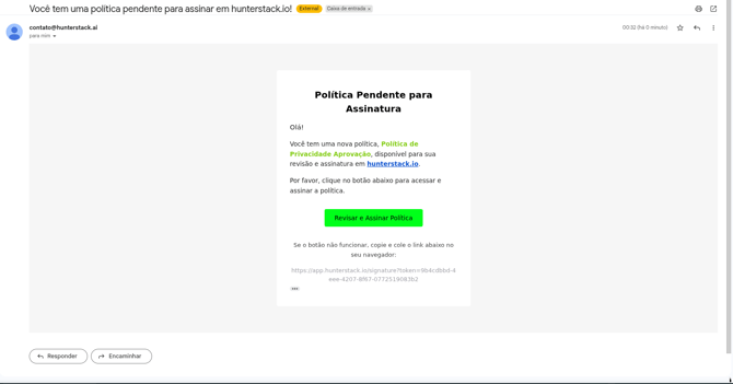 - O signatário receberá um e-mail oficial informando sobre a pendência de uma nova política.